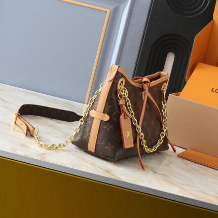 Upgrade the original M13014 M24860. This CarryAll BB handbag is made of Monogram canvas and adorned with Monogram flowers on the dazzling chain. It lights up day and night occasions with a trendy attitude. The leather name tag and drawstring closure complement each other. The zippered inner pocket is convenient for daily access to credit cards. Size: 26.0 x 17.0 x 10.0 cm.