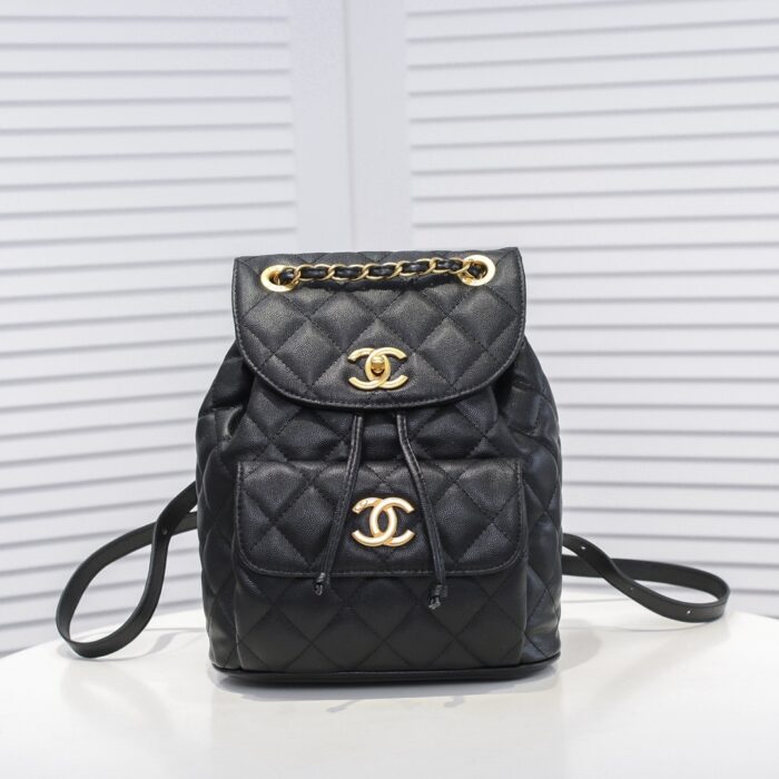 💋CHANEL new black calfskin Duma backpack, super wear-resistant lychee pattern calfskin, super cute, strong grass 🎉🎉 21.5x24x12cm Model number: 9051