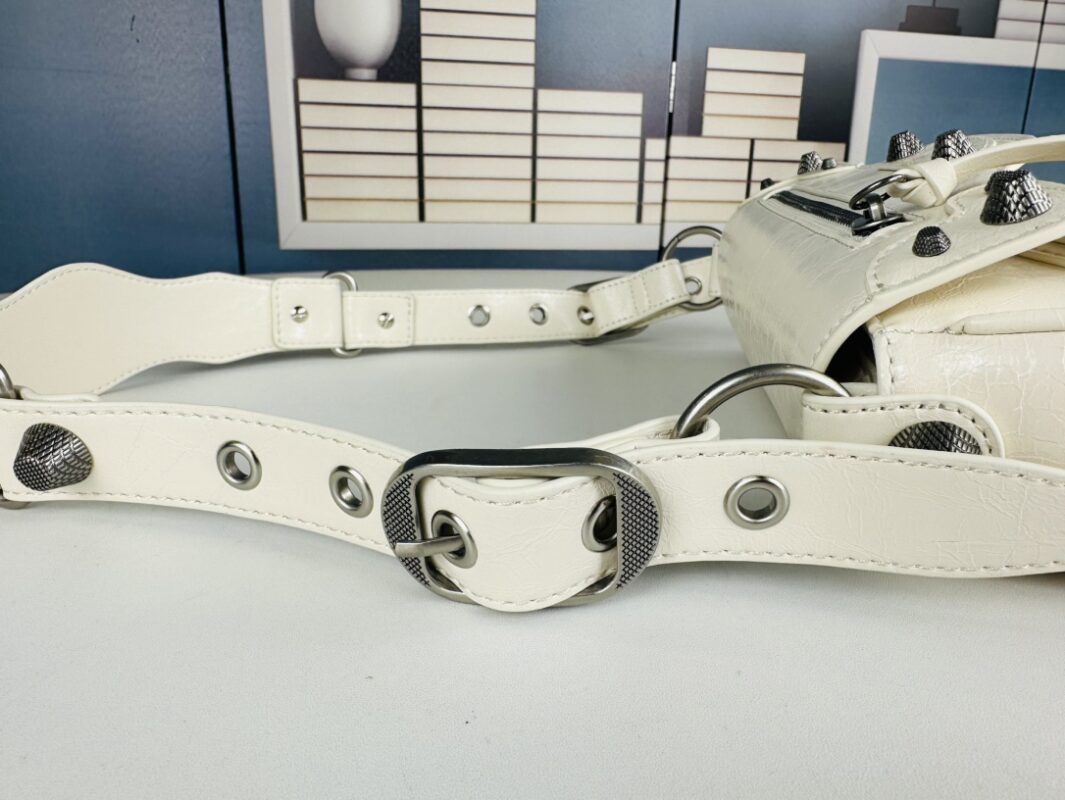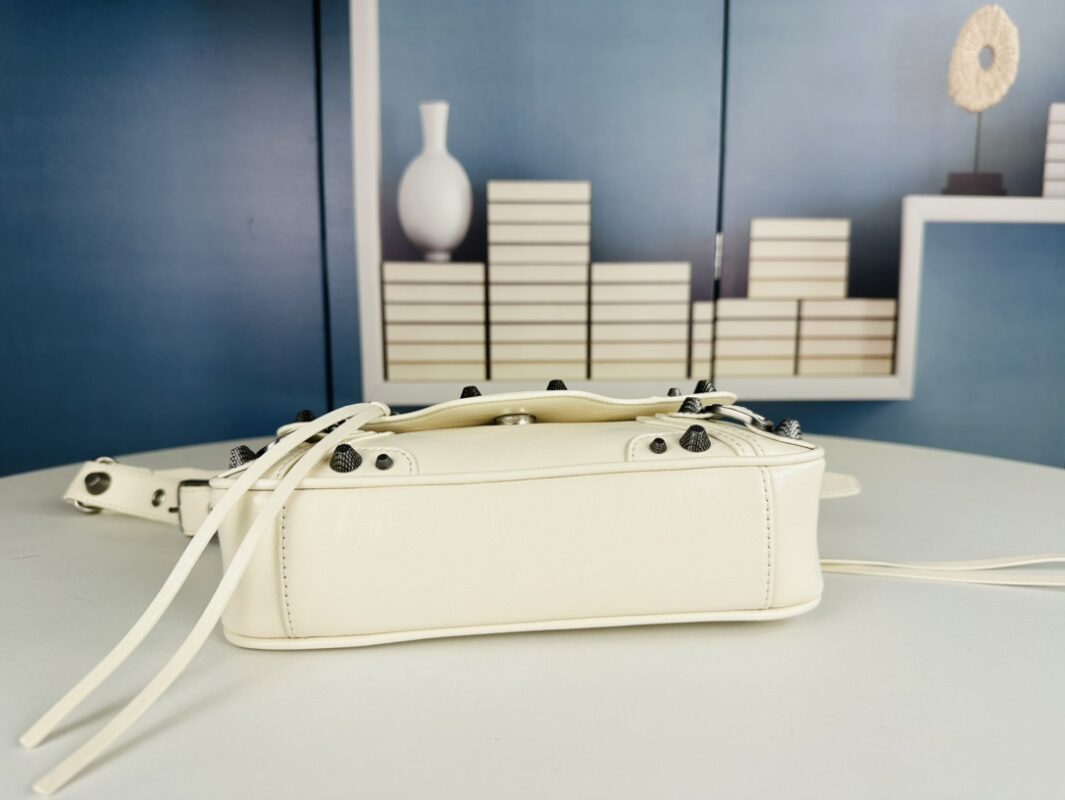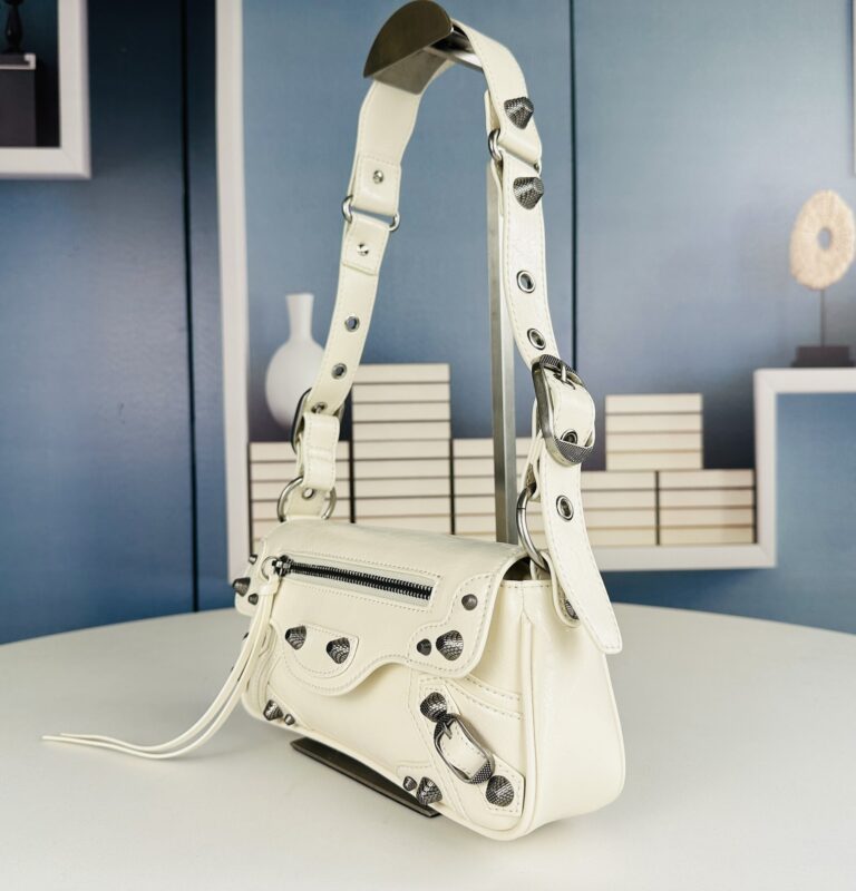 BALENCIAGA Paris Le Cagole🖤|||Where are Jay Chou's fans🙌 Le cagole camera motorcycle flap bag [wax black/grey]📷 There are not many men's bags with such a sense of design. The square flap design with rivet hardware is very punk🎸. The waxed leather burst texture makes the physical object extremely good-looking[golden potato R][golden potato R]. The adjustable woven shoulder strap has additional eyelets and an external leather card case. The classic little heart mirror in the past has been replaced by an AirPods holder🎧. It's simply amazing!!! It is directly a gospel for headset enthusiasts[drinking milk tea R][drinking milk tea R]. [side eye R][side eye R] Vertical style and new horizontal style, suitable for both men and women. ❥The horizontal wax black is so popular that it is often out of stock💥. Size 24x11x6, model number.