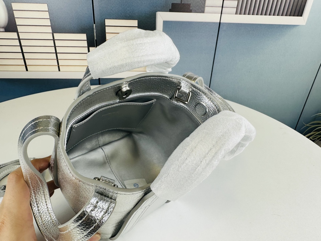 New Balenciag Winter 24 series Re-see handbag, single-shoulder bucket bag, made of top-layer cowhide with visible texture. It uses original hardware and is minimalist, high-end and atmospheric. A handbag transformed from a motorcycle glove. Hanging on it is the fashion recreated with a key ring buckle. It gives off a lazy and御姐风 (domineering female style) look when worn. Size: 37x21x10.