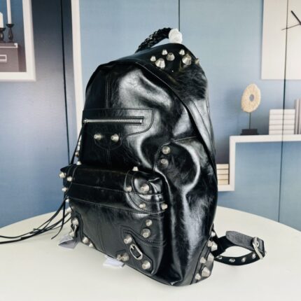 New style. Top-grain leather ❤️ A fashionable bag that can elevate the whole body's outfit ||| Balenciaga Le Cagole studded backpack. A super cool and interesting backpack. Casual and lazy, a bit cool and chic. Hahaha. It is a backpack that can elevate the whole body's outfit. Leather determines the soul of the whole bag. #Motorcycle bag Balenciaga bag. Size: 34x49x9.