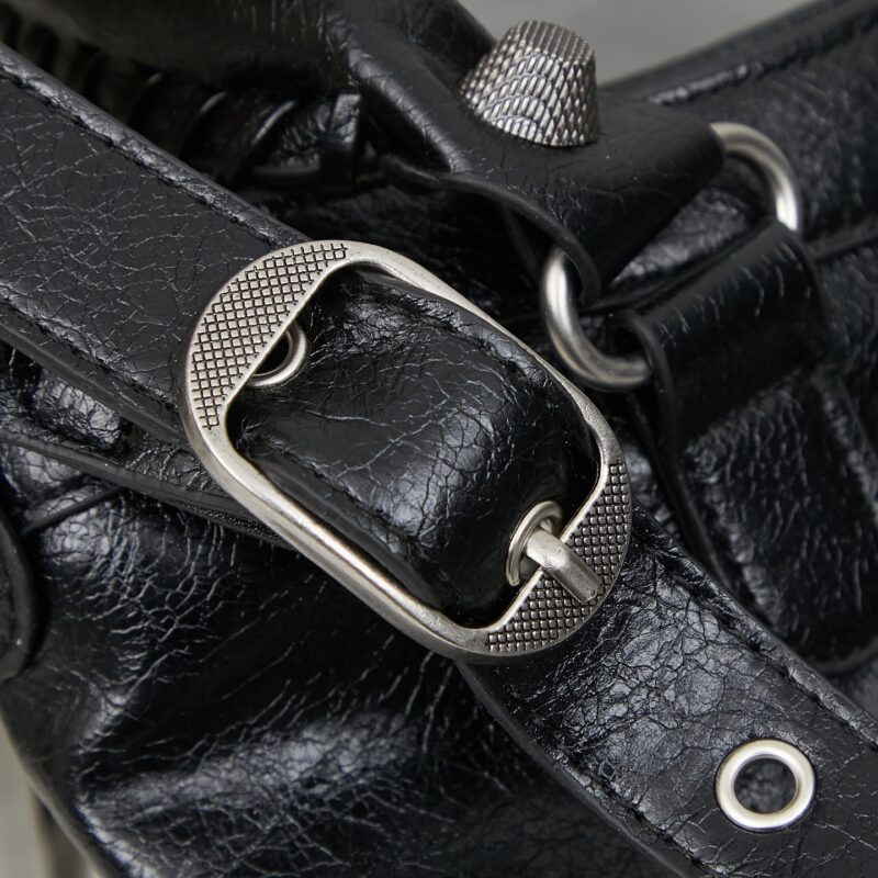 New Balenciag Winter 24 series Re-see handbag, single-shoulder bucket bag, made of top-layer cowhide with visible texture. Adopting original hardware, it is minimalist, high-end and atmospheric. A handbag transformed from a motorcycle glove, hanging with fashion recreated from a key ring buckle. It gives off a lazy and御姐风 look when worn. Size: 30x25x10.