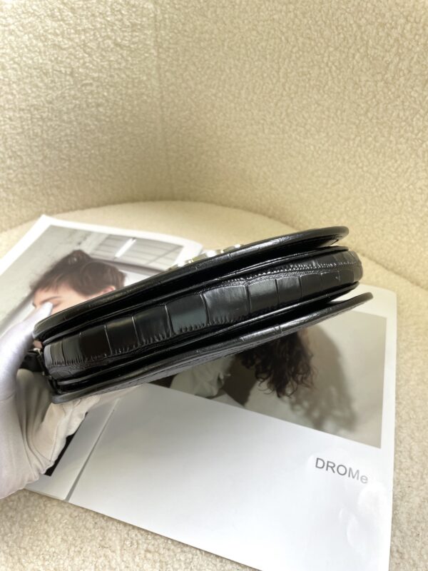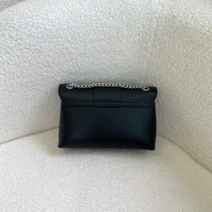 The newly released Victoire chain bag is crafted with textured leather to create a square silhouette and is paired with a golden sliding chain shoulder strap, exuding the style of a Tomboy cool girl. Another Tily handbag features a playful crescent silhouette that sets off the Triomphe emblem, revealing the sweet charm of a girl next door. The Triopmhe metal Triomphe emblem remains the visual focus. The newly released Victoire chain bag uses textured calfskin to create a soft bag shape, replacing the hard and sharp line structure, making it more relaxed and friendly. The metal sliding chain shoulder strap can achieve different styles such as shoulder carrying and crossbody carrying. The bag can freely switch between casual and formal scenes. Style number: 810524 Size: 9X6X3 inches (23.5X14X8 cm). Crossbody and shoulder carry. TRIOMPHE snap closure. 2 main compartments and 1 inner flat pocket. Sliding chain.