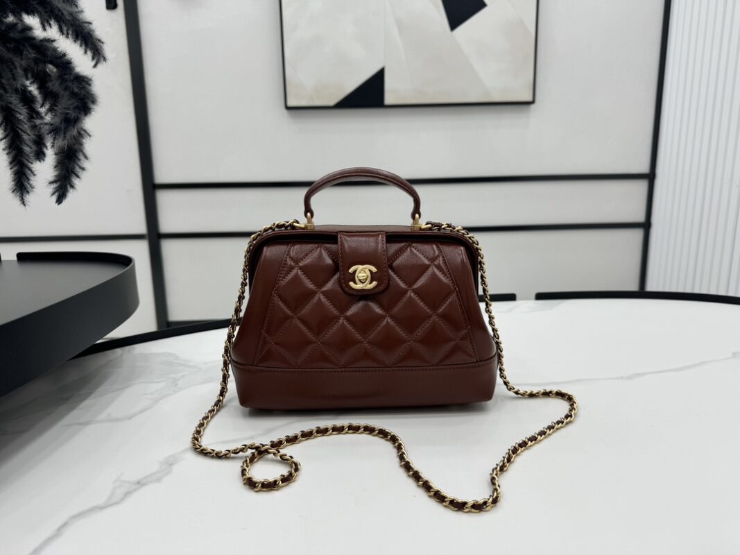 AS4959 Chanel 24A handmade visit series, doctor bag, super beautiful in kind, oil wax leather with metal chain, classic rhombus design, retro and fashionable, showing noble and elegant, a favorite one, size: 16 × 23.5 × 8cm