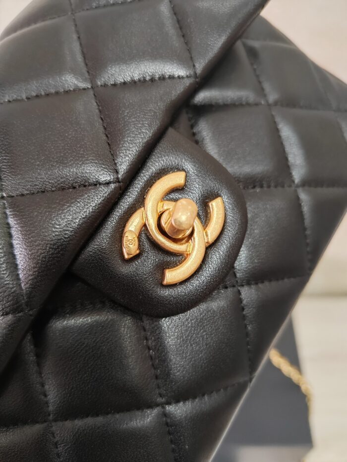 Chane1🧩 Spring/Summer Series 24P pearl chain mini AS4384. The pearl chain and the overall black and gold color scheme are more elegant and noble. This square mini is so beautiful. It can also be carried by hand. It is really amazing and special when worn. It is small, delicate and the physical object is extremely beautiful.