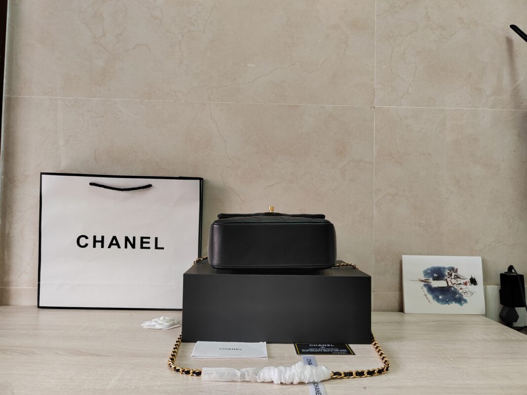 Chane1🧩 Spring/Summer Series 24P pearl chain mini AS4384. The pearl chain and the overall black and gold color scheme are more elegant and noble. This square mini is so beautiful. It can also be carried by hand. It is really amazing and special when worn. It is small, delicate and the physical object is extremely beautiful.