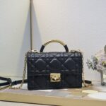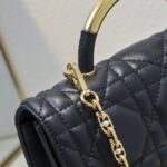 Start Dior’s new series with an elegant and fashionable aesthetic style. With oversized cannage topstitching, a stiff retro gold-finished metal top handle engraved with the Christian Dior Paris logo. The flap is decorated with a CD clasp embellished with resin beads. The silhouette with triangular lining is matched with two spacious compartments and an insert pocket, which can hold various daily necessities. The design is elegant. The adjustable and detachable chain shoulder strap is composed of gold-finished metal CD chain links embellished with resin beads. It can be carried by hand, on the shoulder or crossbody.