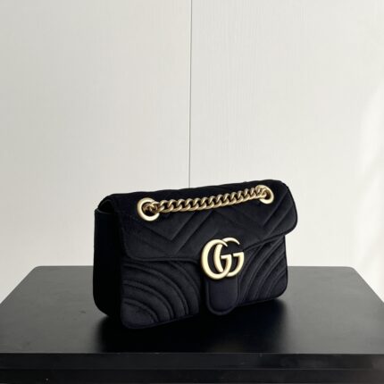 Real shot #s Model Number: 446744 Velvet Size: 22-13-6 cm GG marmont velvet series Autumn and winter limited time return 🥹 is really the tears of the times Anti-plush fabric, showing dark and light color effect 👏 The opposite silk has small pockets inside and small. Classic flip, bronze logo double G hardware and chain with 62326.