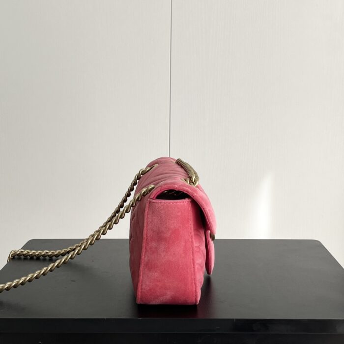 Real shot #s Model Number: 446744 Velvet Size: 22-13-6 cm GG marmont velvet series Autumn and winter limited time return 🥹 is really the tears of the times Anti-plush fabric, showing dark and light color effect 👏 The opposite silk has small pockets inside and small. Classic flip, bronze logo double G hardware and chain with 62326.