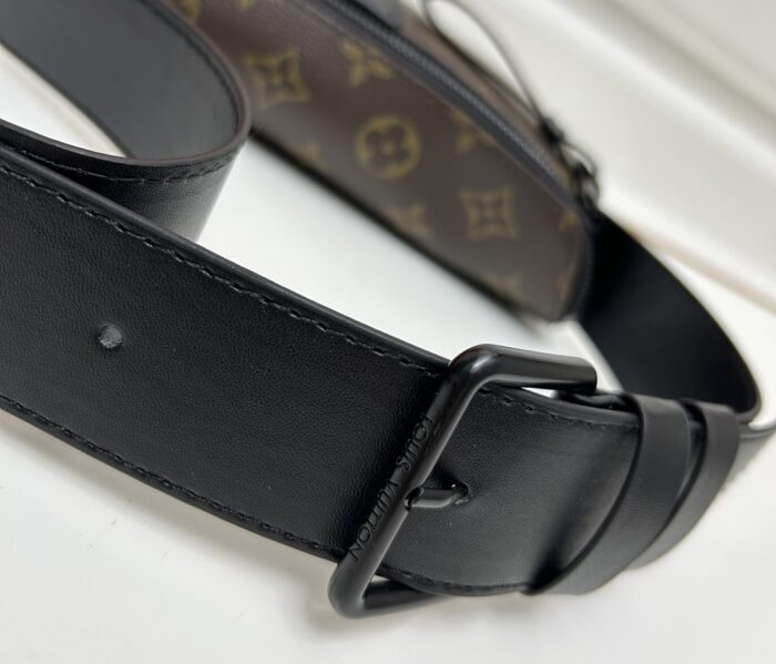 M23835 blue flower, M23838. This LV Moon Crossbody handbag is made of Monogram Eclipse coated canvas with leather trim and shoulder strap. The elegant and handsome atmosphere is self-evident. Blue flower flame rose silk-screened semicircle bag, moon bag, pea bag oo [handshake] [handshake]. The half-moon shape is convenient for cross-body wearing from front to back and can easily hold mobile phones, small wallets and headphones. Size: 24.5 x 16 x 4.5 cm.