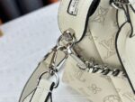 This Mahina Hand It All handbag is made of finely perforated cow leather to complement the chic contour of the bag with an elegant pendant texture. The leather shoulder strap and chain leather woven handle are removable, providing a trendy choice for everyday travel. Large 32.0 x 29.0 x 13.0 cm