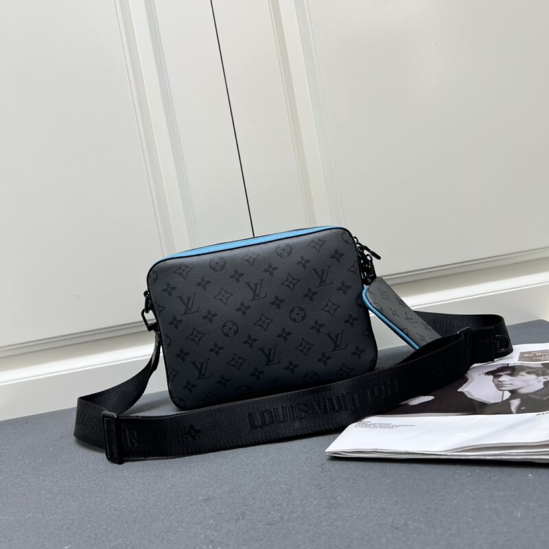 The new M57840 Trio messenger bag is made of Monogram Eclipse canvas and Monogram Eclipse Reverse canvas. The iconic monochromatic gray pattern highlights the lines of this multifunctional patchwork design. In addition to having the functions of a traditional crossbody bag, it is also equipped with a detachable zipper bag and a coin purse attached to the bag strap. Small bag: 12×7 cm. Medium bag: 24×15 cm. Large bag: 26×5×18 cm.