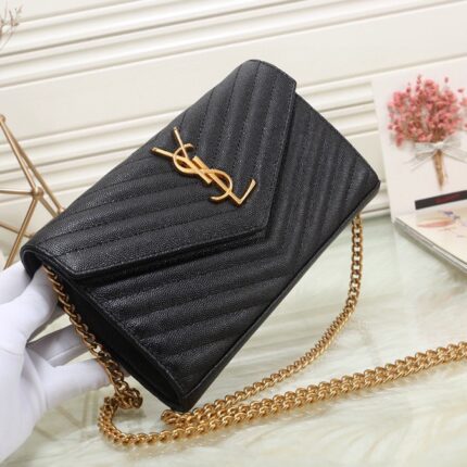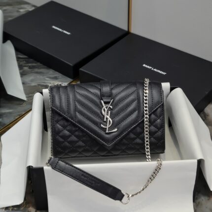 Medium size, Envelope# black silver buckle. Medium-sized grained embossed quilted genuine leather envelope bag. Classic is eternal. The V-pattern combined with rhombus-shaped caviar pattern is extremely beautiful. Italian cowhide leather with a conspicuous Y brand logo is both atmospheric and fashionable. One chain with three ways to carry: single-chain crossbody, double-chain single-shoulder, and single-chain single-shoulder are all perfect. For fairies of different heights, there is always a carrying method suitable for you. Oh no, it's the feeling of falling in love. Model: 48722. Size: 24x17.5x6cm.