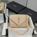 Small size. Envelope#Apricot gold buckle_. Small grained embossed quilted genuine leather envelope bag. Classics are eternal. The V-pattern combined with rhombus pattern and caviar texture is extremely beautiful. It is very wear-resistant. Italian cowhide with a conspicuous Y family logo is both atmospheric and fashionable. It is very versatile. The small size has a large capacity. Looking at its side, you can know that it can hold a lot. Model: 52620. Size: 21x13x6cm.