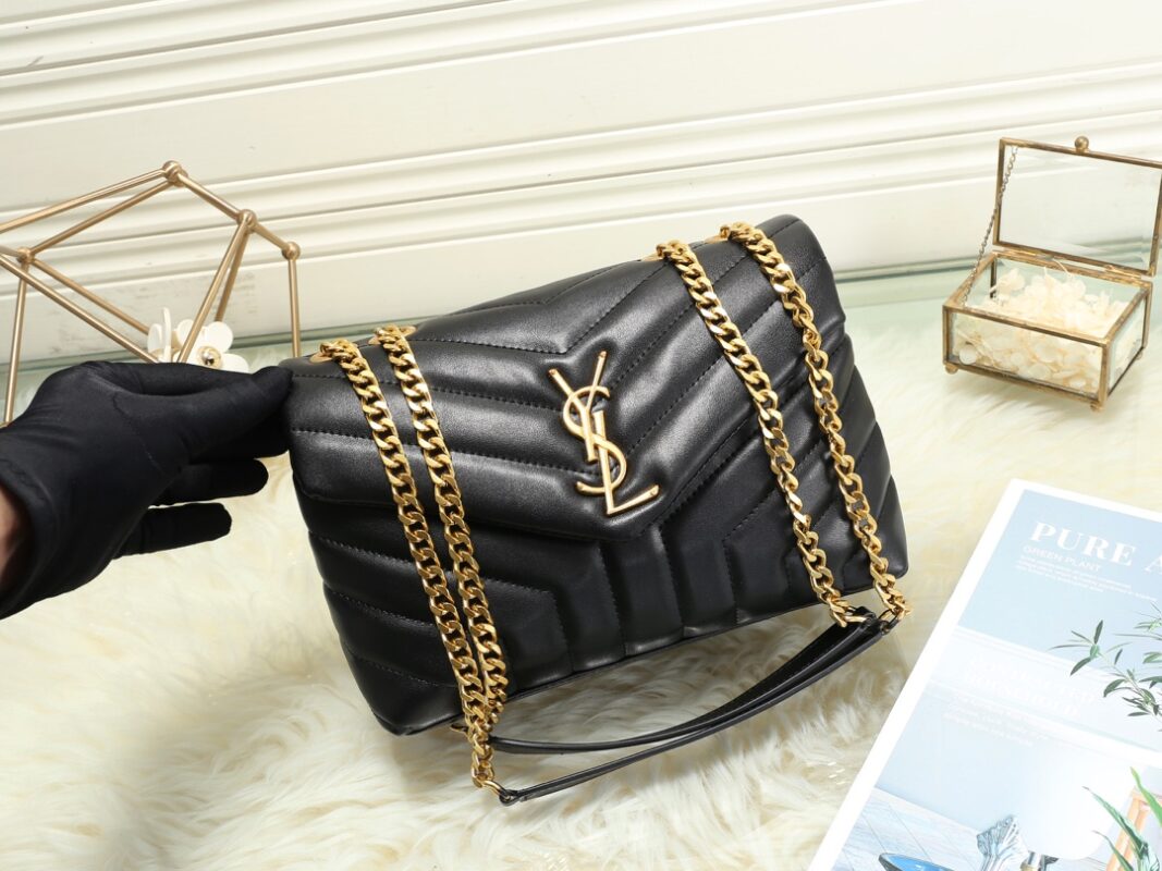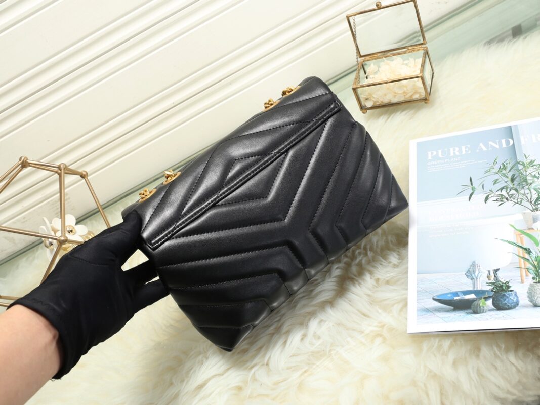 Popular calfskin Loulou medium-sized genuine leather shoulder bag from Saintarent. Design details: multi-way shoulder strap, flap decorated with snap buttons, envelope style, embossed flower print, silver hardware, YSL logo lock, shoulder strap pendant: 57 cm! Model number 5312#!!! Gold buckle size: 25x18x10cm.